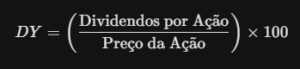 O Dividend Yield (DY) mede a relação entre os dividendos pagos e o preço atual da ação.